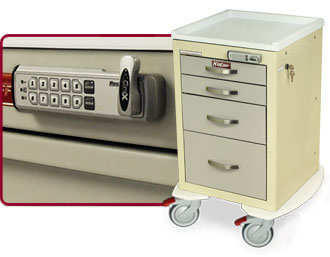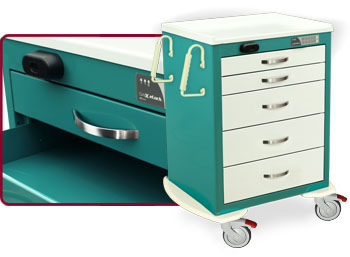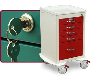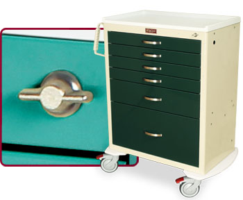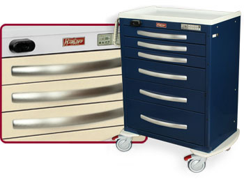 Harloff understands the importance of safely securing medical supplies in a public, hospital environment, and offers a variety of high-quality standard locks, closure options, and key lock overrides. We can also use custom mechanisms for special security needs upon request.
