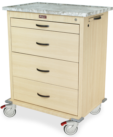 Harloff’s line of furniture carts and in-room cabinets are designed to support Culture Change initiatives in long term care. These carts and cabinets look like furniture, but the internal structure is engineered to meet industry standards for security and function. Harloff manufactures a complete line of medical furniture to provide an upscale look when compared to typical metal options. Our product line includes isolation, emergency, treatment and medication carts.