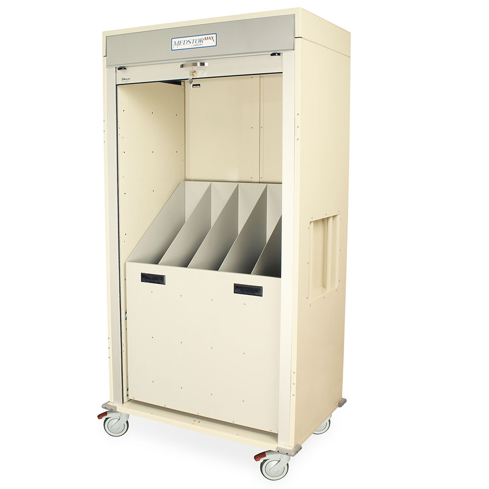 This factory installed accessory is designed for double column MedStor Max cabinets. This sliding catheter storage drawer is affixed to the bottom interior of cabinets and slides easily outward when pulled by one of the two black drawer pull handles. Designed specifically for cath labs, this container is separated into five different sections with each partition measuring 6.4″ wide and 19″ deep. Give nurses and other clinical personnel at your facility a reliable storage option for your catheter inventory by upgrading your MedStor Max double column cabinets with this accessory.