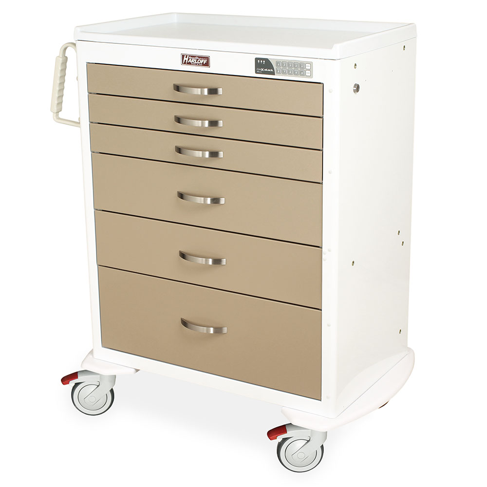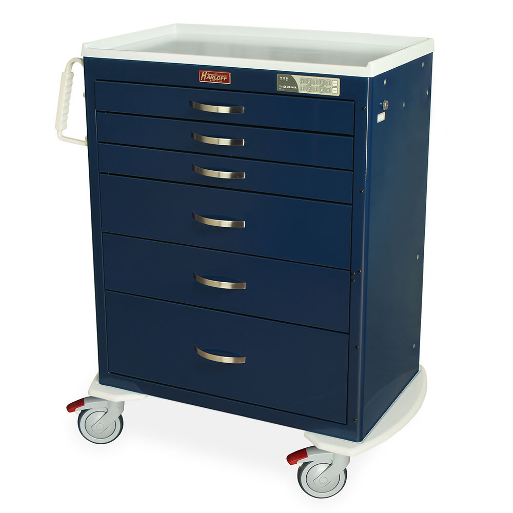 Harloff medical treatment carts are designed and built to meet the needs of today’s healthcare market. Ergonomic side handles, comfort drawer pulls, expanded lock options and a standard plastic top make things easier for your staff and help support your infection control initiatives. M-Series carts offer you choices.