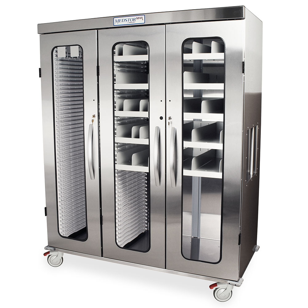 For mobile or fixed storage, our stainless steel medical storage cabinets provide high density and secure storage for valuable medical supplies used in surgical procedures. MedStor Max operating room cabinets are designed around the most innovative modular tray system on the market and feature your choice of door style for security and ease of access.